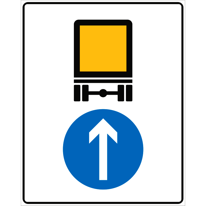 | Kötelező haladási irány veszélyes anyagot szállító jármű részére (egyenesen) KRESZ közlekedési tábla 600x750 mm (2. fóliaosztály) gyorsforgalmi út, főút, főútvonal KZD020001HHI06000750 | horganyzott lemez + fényvisszavető fólia HI | 600 mm | 750 mm | 1.99 mm | db | 16461 Ft | 20905 Ft |