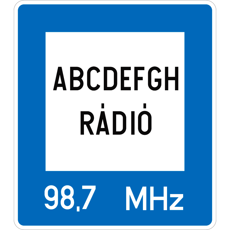 | Közlekedési információt adó rádióállomás KRESZ közlekedési tábla 300x300 mm (nem KRESZ-szabvány) KZF013001PVC03000300 | PVC 1 mm | 300 mm | 300 mm | 1 mm | db | 2200 Ft | 2794 Ft |