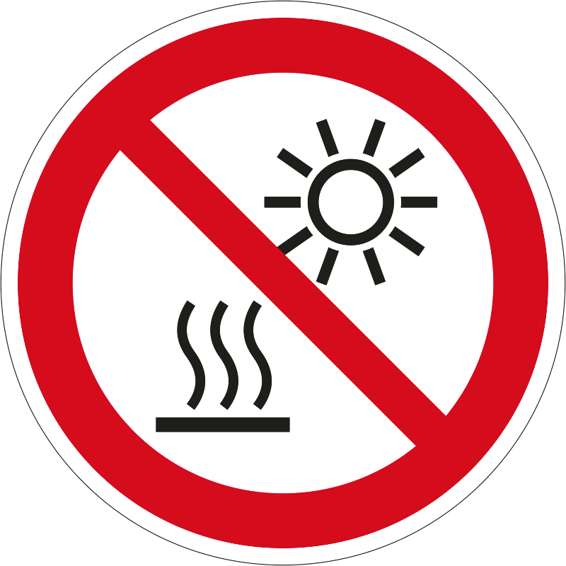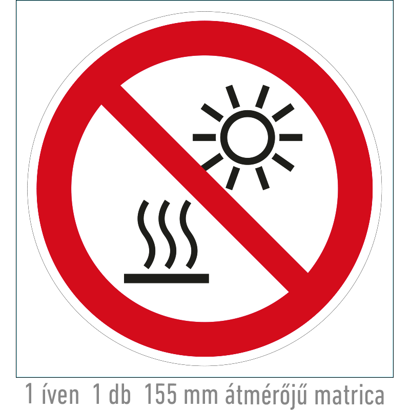 A “Közvetlen napfénynek, meleg felület hatásának kitenni tilos!” a felmelegedés lehetőségét tiltó piktogram.
