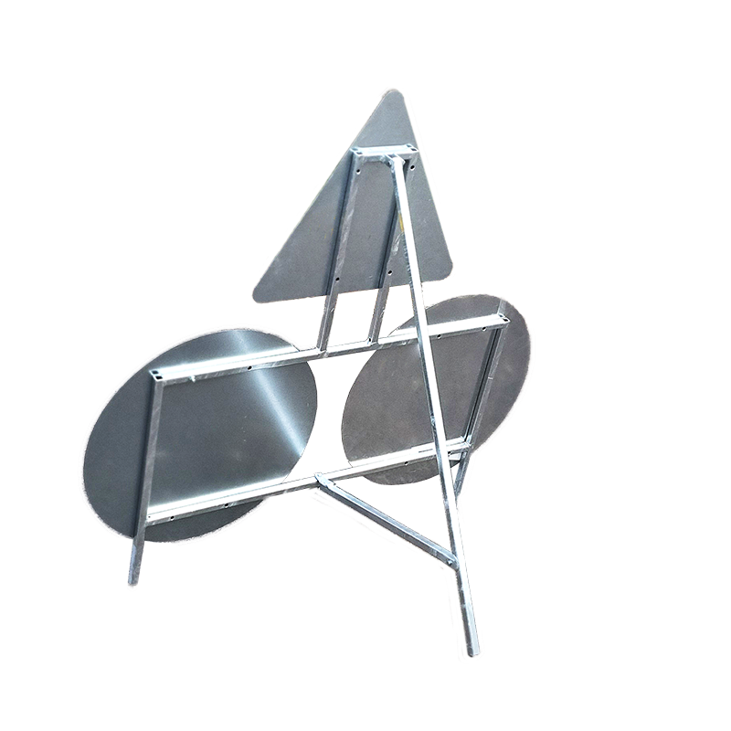 • Többszintes táblarögzítés: Lehetőség van 3 db 600 mm-es közlekedési tábla egyidejű rögzítésére. (A kereten lévő furatok 1 db 600mm-es háromszög alakú tábla (pl. úton folyó munka) és két db Ø600mm kör alakú tábla (pl.: sebességkorlátozás, és kikerülési irány jelzése) kihelyezését teszik lehetővé.)