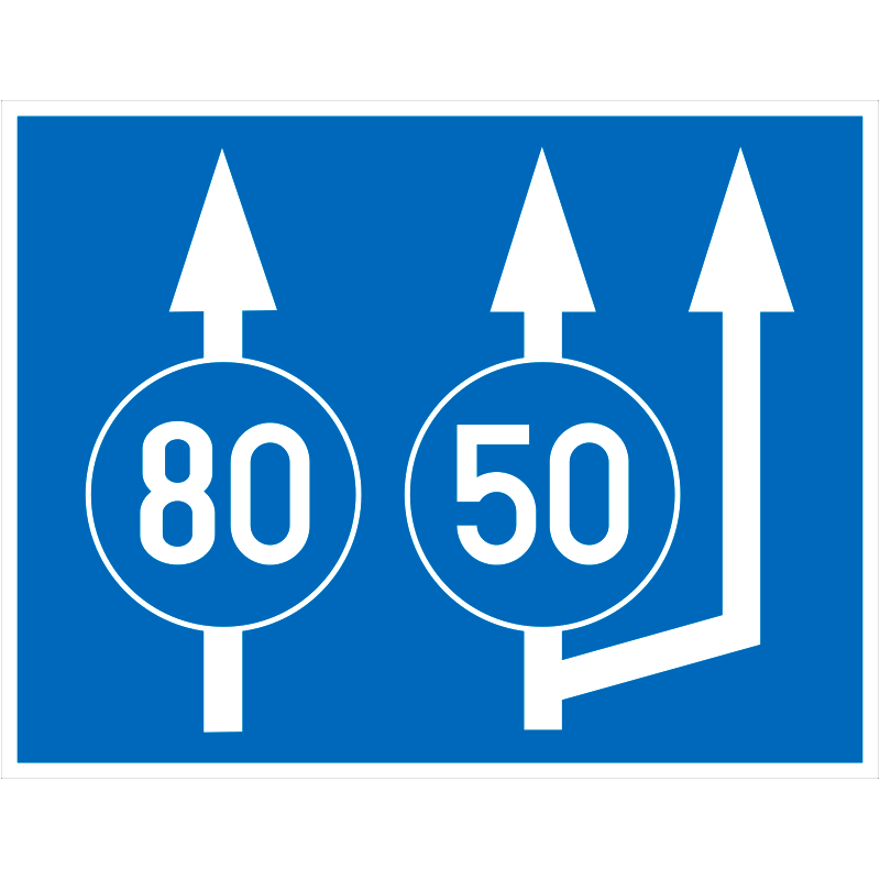 Különböző forgalmi sávokra érvényes kötelező legkisebb sebesség KRESZ közlekedési tábla