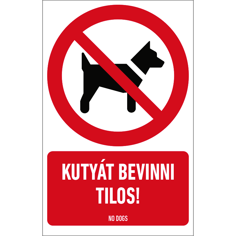 A “Kutyát bevinni tilos!” a kutyák bevitelét tiltó piktogram+felirat.
