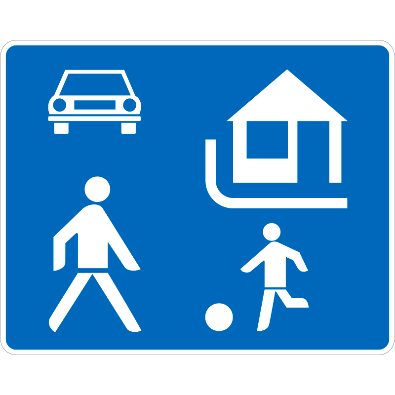 | Lakó-pihenő övezet KRESZ közlekedési tábla 750x600 mm (1. fóliaosztály) csak mellékutakon használható KZE043001HOR07500600 | horganyzott lemez + fényvisszavető fólia EGP | 750 mm | 600 mm | 1.86 mm | db | 14527 Ft | 18449 Ft |
