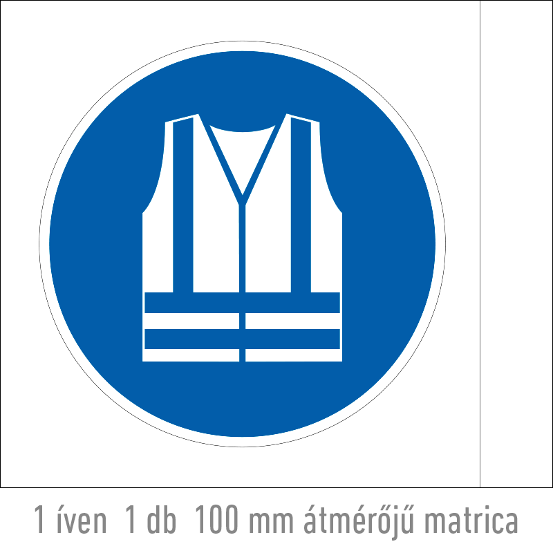 | Láthatósági mellény viselése kötelező! matrica (ISO 7010-M015 piktogram) 100 mm BIT057000ONV01000000 | vinil öntapadó | 100 mm | 100 mm | 0.2 mm | db | 225 Ft | 286 Ft |