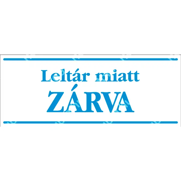 | Leltár miatt zárva! matrica (kék/fehér, magyar nyelvű) 250x100 mm UZT003002ONV02500100 | vinil öntapadó | 250 mm | 100 mm | 0.2 mm | db | 385 Ft | 489 Ft |