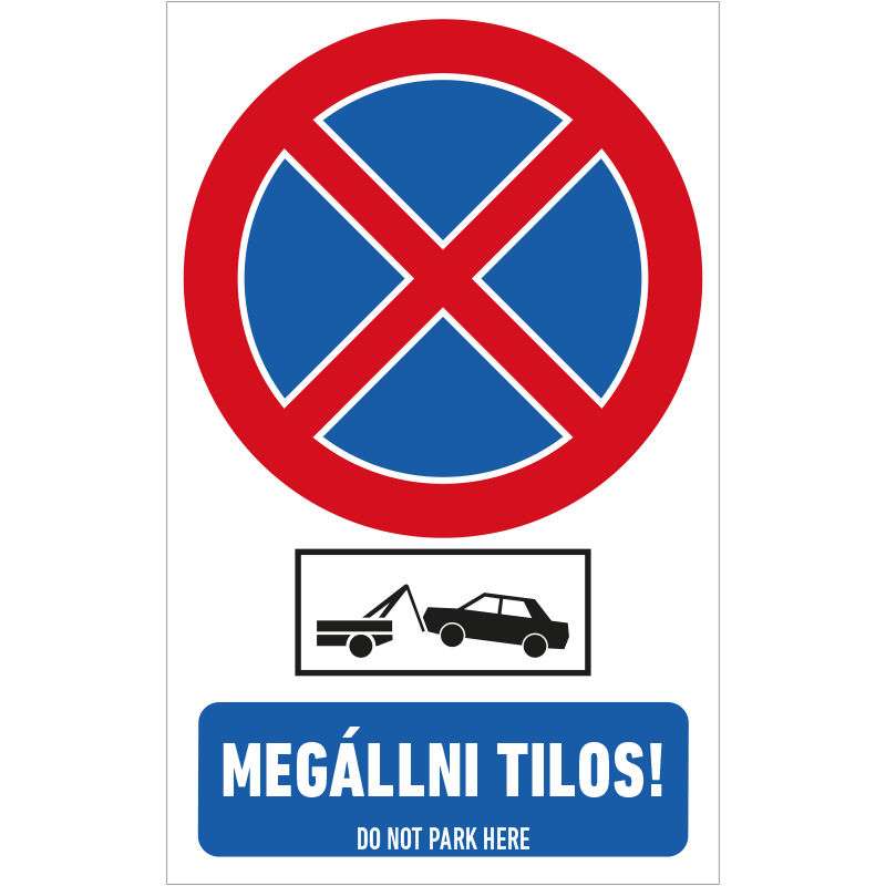 A „Megállni tilos! Autóelszállítás!” a megállás tilalmára és az autó elszállítására figyelmeztető jelzés és felirat.