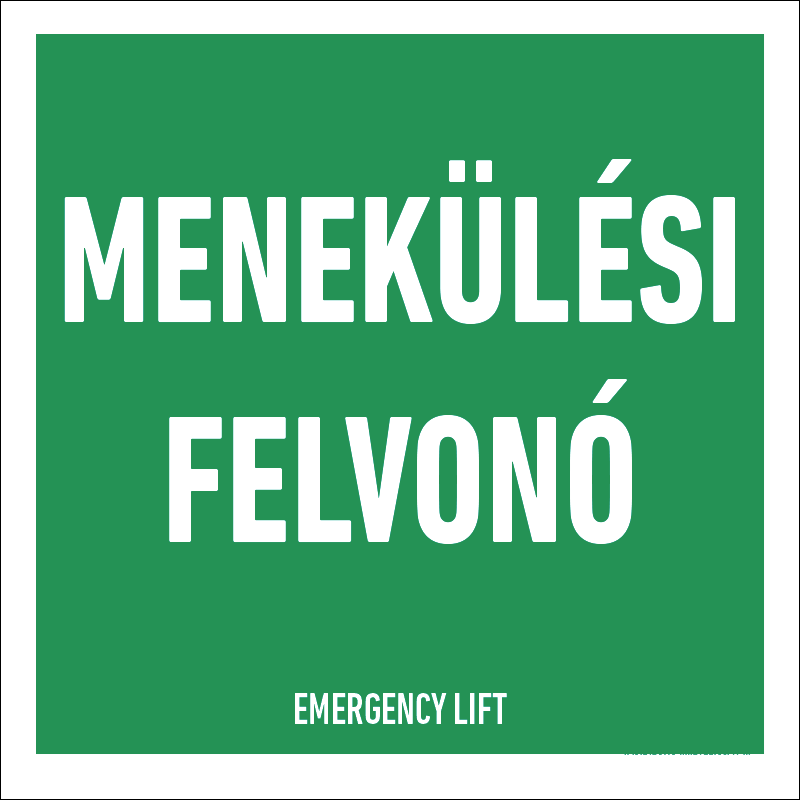 A “Menekülési felvonó” a tűz esetén a bentlévők által is használható biztonsági felvonót jelző zöld alapon fehér piktogram.