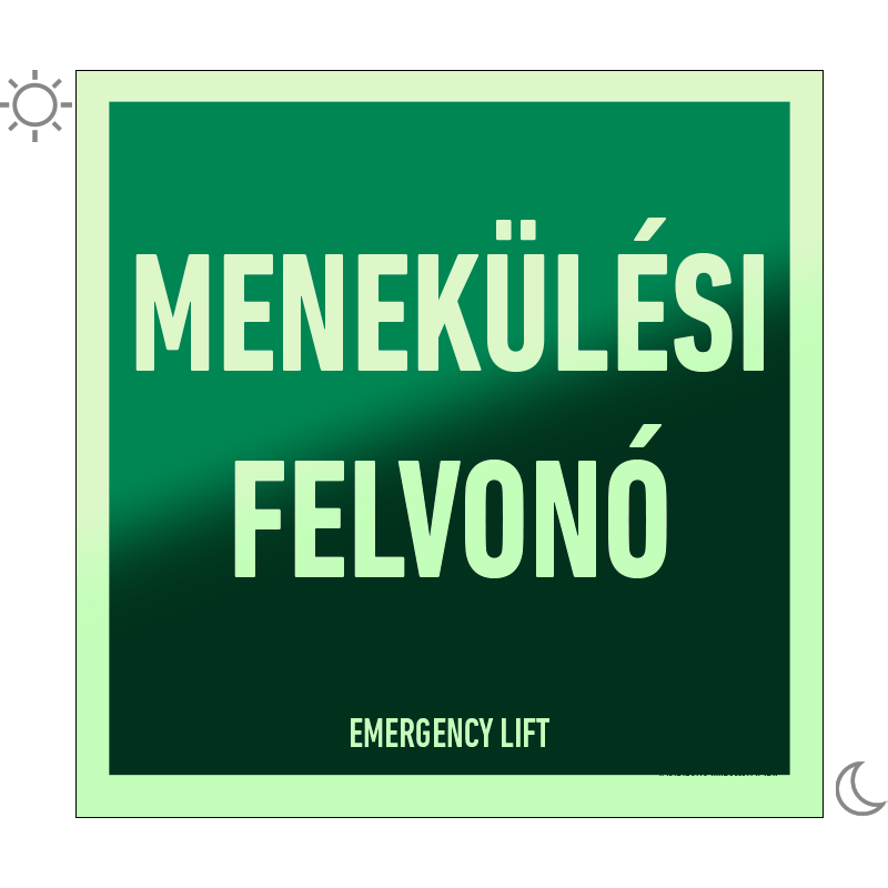| Menekülési felvonó utánvilágító matrica (felirat) 150x150 mm MET048001UTV01500150 | utánvilágító öntapadó | 150 mm | 150 mm | 0.5 mm | db | 1100 Ft | 1397 Ft |