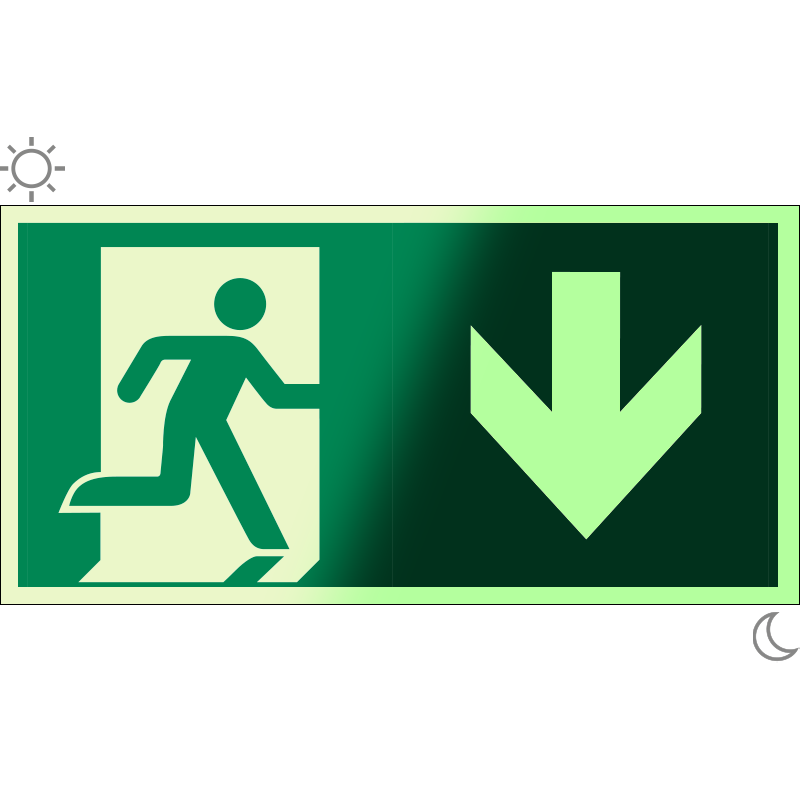 Menekülési út le (jobb) utánvilágító matrica (ISO 7010-E002 piktogram) 400x200 mm MET002002UTV04000200 utánvilágító öntapadó 400 mm 200 mm 0.5 mm db 3950 Ft 5017 Ft