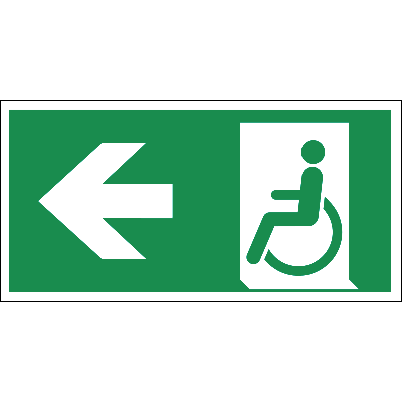 | Mozgásukban korlátozott személyek számára mentési/menekülési út balra tábla (ISO 7010-E030 piktogram) 300x150 mm MET104001PET04000200 | PET-G 0,7 mm+kétoldalas ragasztó | 400 mm | 200 mm | 1 mm | db | 2250 Ft | 2858 Ft |