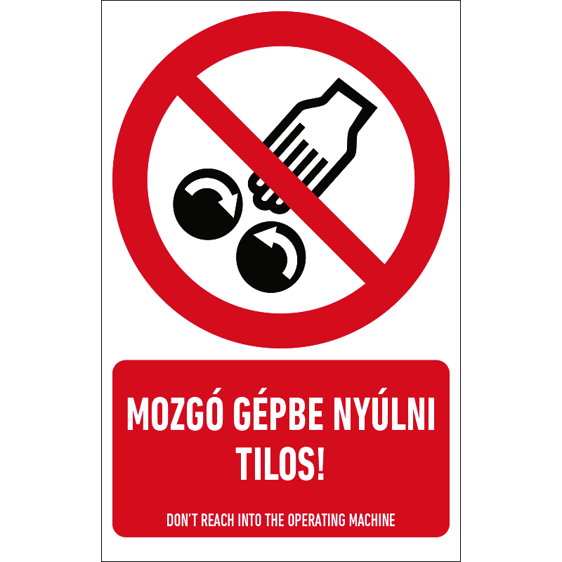 A “Mozgó gépbe nyúlni tilos!” a működésben lévő gépbe nyúlást tiltó piktogram+felirat.