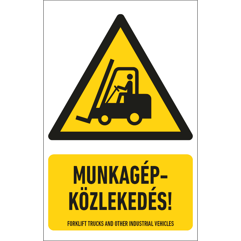 | Munkagép-közlekedés! tábla (ISO 7010-W014 piktogram + felirat) 160x250 mm VET024001PVC01600250 | PVC 1 mm | 160 mm | 250 mm | 1 mm | db | 825 Ft | 1048 Ft |