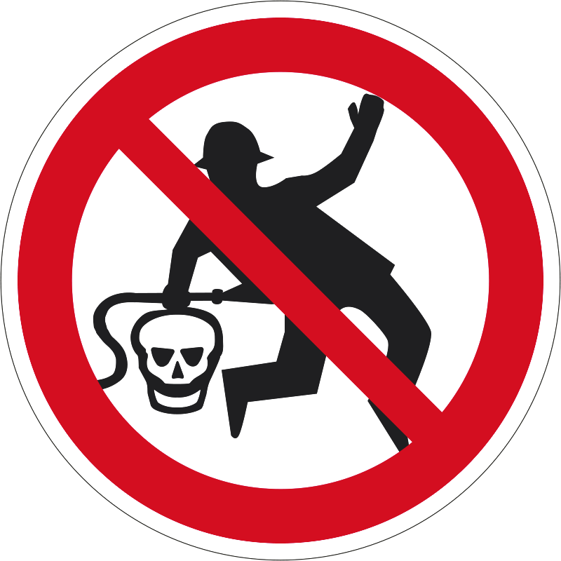 A “Munkaruhát sűrített levegővel tisztítani tilos!” a sűrített levegő nem rendeltetésszerű használatát tiltó piktogram.