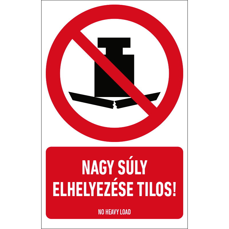 A “Nagy súly elhelyezése tilos” a felületre nagy súlyú tárgy elhelyezését tiltó piktogram+felirat.