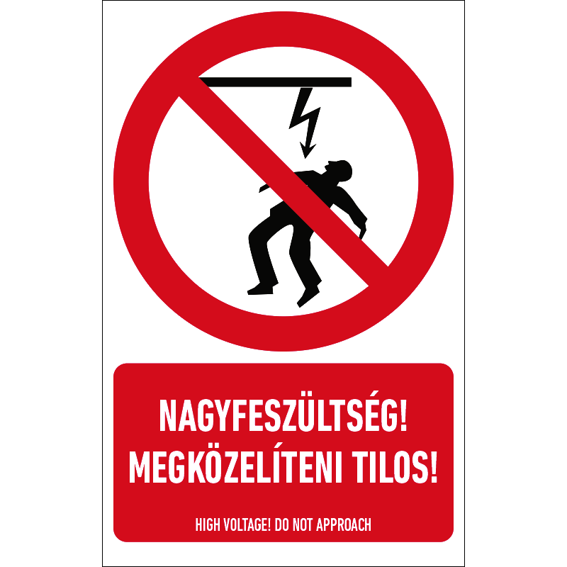 A “Nagyfeszültség! Megközelíteni tilos!” a nagyfeszültségű hálózat megközelítését tiltó piktogram+felirat.