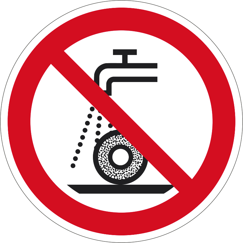 A “Nedves csiszolás tilos!” a csiszolandó anyag tulajdonságai miatt a nedves csiszolást tiltó piktogram.