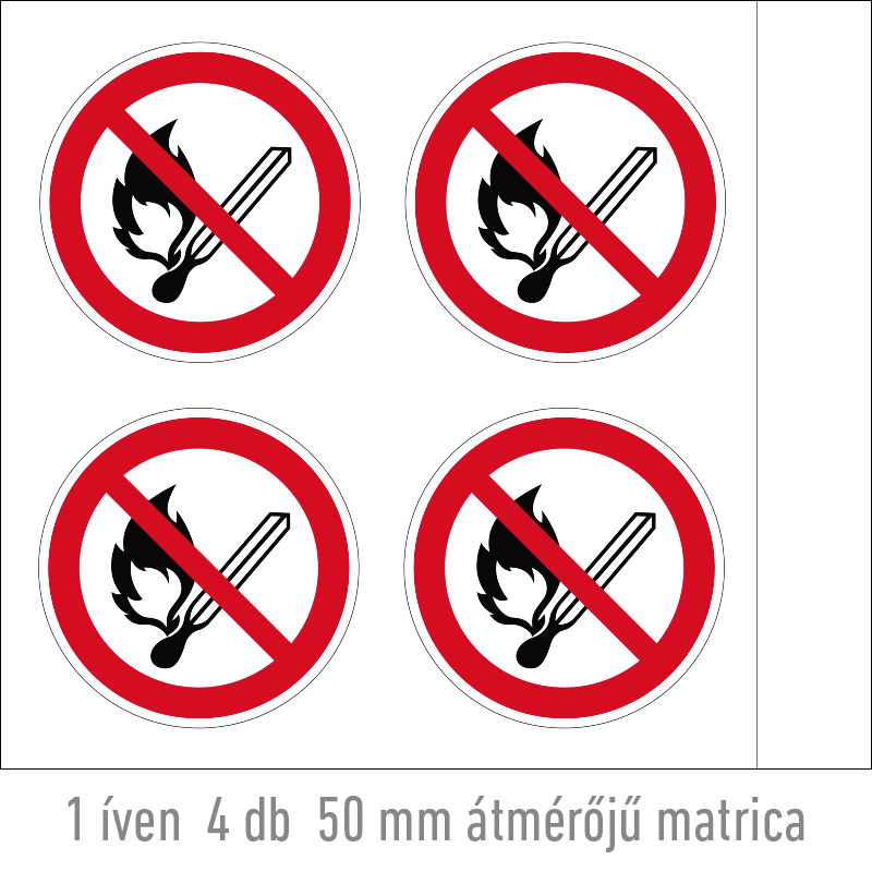 | Nyílt láng használata tilos! matrica (ISO 7010-P003 piktogram) 50 mm TIT022000ONV00500000 | vinil öntapadó | 50 mm | 50 mm | 0.2 mm | ív | 330 Ft | 419 Ft |