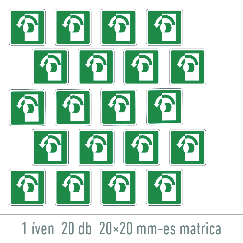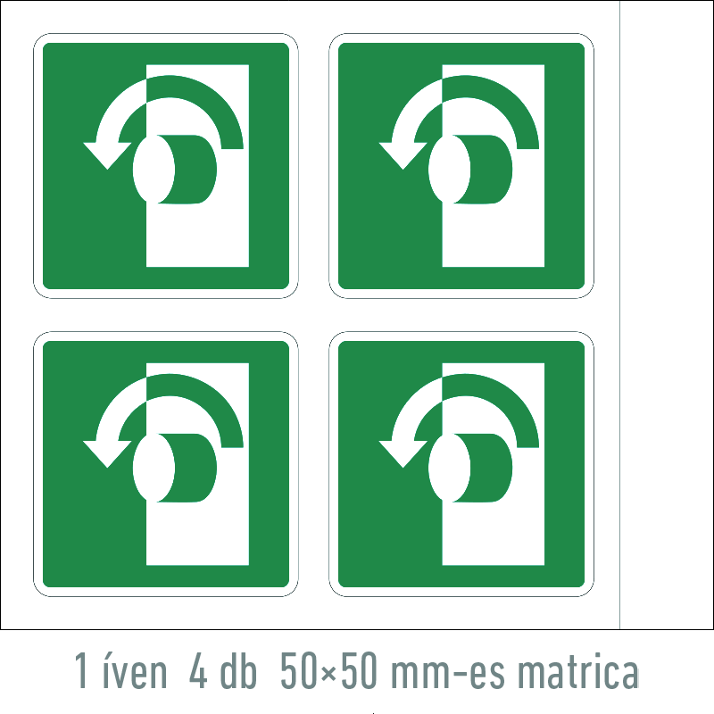 | Nyitáshoz fordítsa balra (óramutató járásával ellentétesen)! utánvilágító matrica (ISO 7010-E018 piktogram) 150x150 mm MET061001UTV01500150 | utánvilágító öntapadó | 150 mm | 150 mm | 0.5 mm | db | 1100 Ft | 1397 Ft |