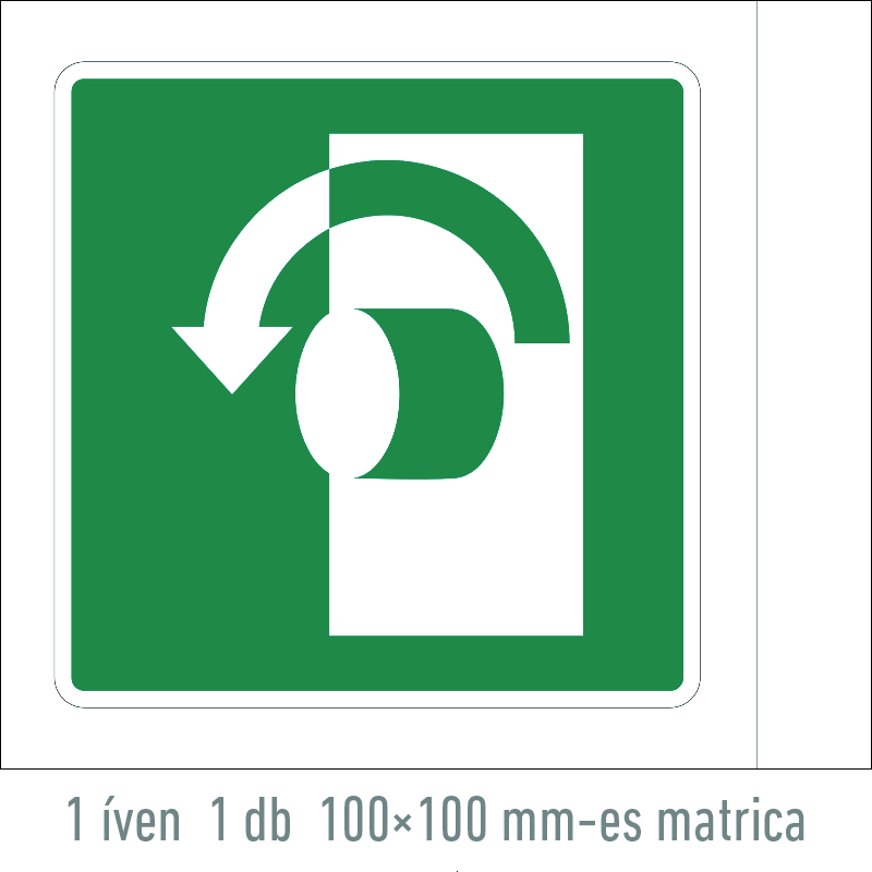 | Nyitáshoz fordítsa balra (óramutató járásával ellentétesen)! tábla (ISO 7010-E018 piktogram) 150x150 mm MET061001PET01500150 | PET-G 0,7 mm+kétoldalas ragasztó | 150 mm | 150 mm | 1 mm | db | 775 Ft | 984 Ft |