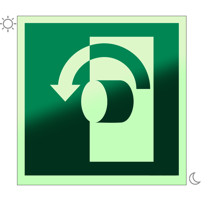 | Nyitáshoz fordítsa balra (óramutató járásával ellentétesen)! utánvilágító tábla (ISO 7010-E018 piktogram) 150x150 mm MET061001UTM01500150 | utánvilágító PVC | 150 mm | 150 mm | 1.1 mm | db | 1100 Ft | 1397 Ft |