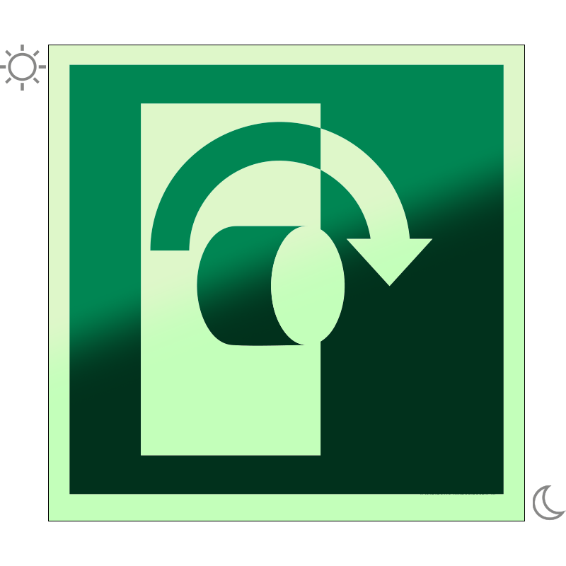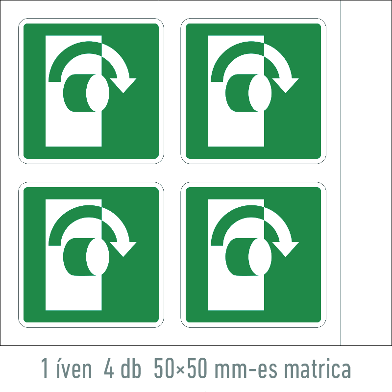 | Nyitáshoz fordítsa jobbra (óramutató járásával megegyezően)! utánvilágító tábla (ISO 7010-E019 piktogram) 150x150 mm MET062001UTM01500150 | utánvilágító PVC | 150 mm | 150 mm | 1.1 mm | db | 1100 Ft | 1397 Ft |