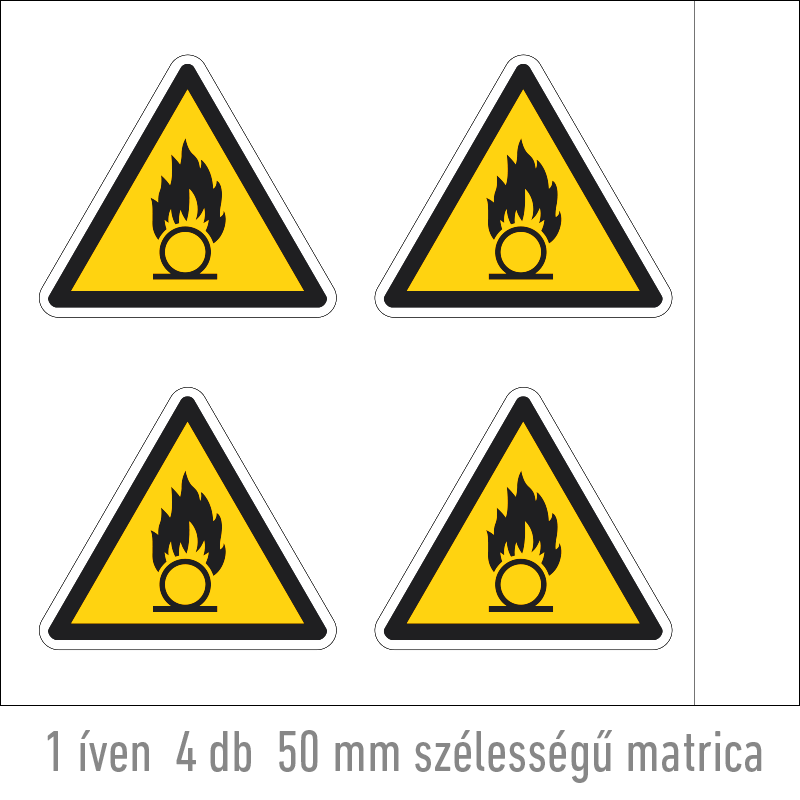 Oxidáló anyag matrica (ISO 7010-W028 piktogram) 50 mm VET002000ONV00500000 vinil öntapadó 50 mm 43 mm 0.2 mm ív 330 Ft 419 Ft