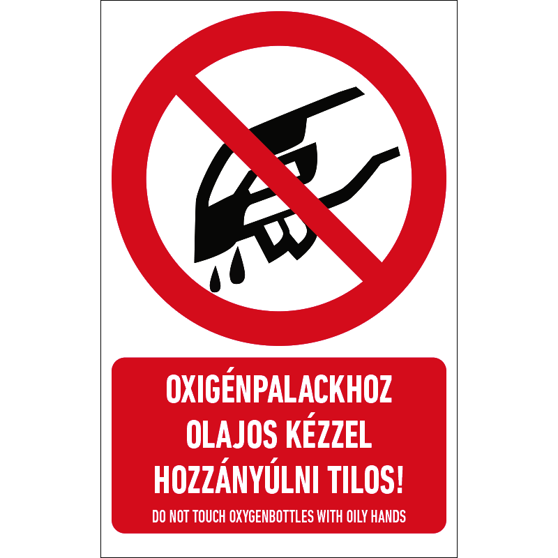 Az “Oxigénpalackhoz olajos kézzel hozzányúlni tilos!” az oxigénpalack olajos kézzel való érintését tiltó piktogram.