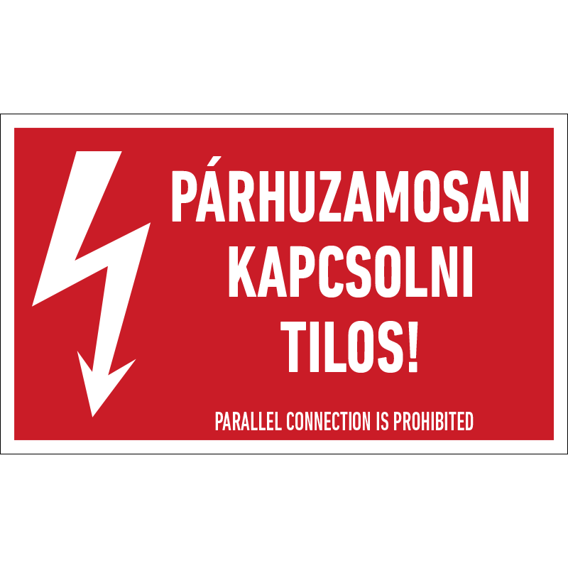 A “Párhuzamosan kapcsolni tilos!” a párhuzamos kapcsolás tilalmára figyelmeztet.