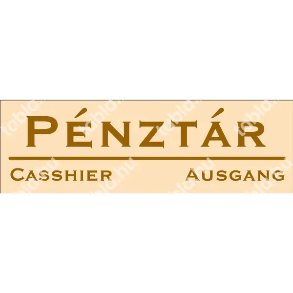 | Pénztár tábla (bézs/barna, három nyelvű) 250x80 mm UZT016001PVC02500080 | PVC 1 mm | 250 mm | 80 mm | 1 mm | db | 545 Ft | 692 Ft |
