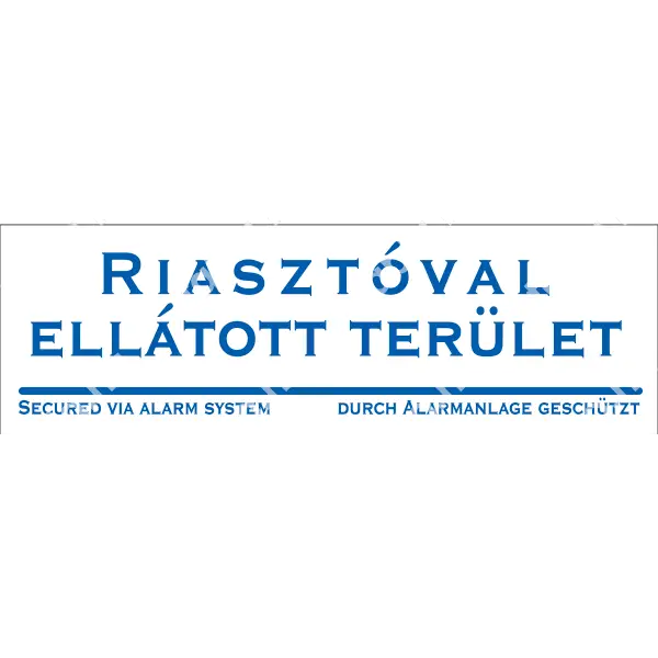 A “Riasztóval ellátott terület” matrica/tábla egy figyelmeztető jelzés, amely arra utal, hogy az adott terület riasztórendszerrel van felszerelve. Biztonsági célt szolgál, hogy figyelmeztesse és elrettentse a területre belépőket a riasztórendszer jelenlétéről. Gyakran látható lakóházaknál, irodákban, üzletekben vagy más ingatlanokon.