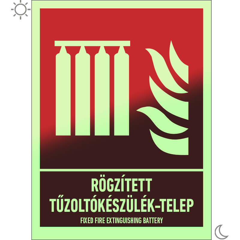 | Rögzített tűzoltókészülék-telep utánvilágító tábla (ISO 7010-F008 piktogram + felirat) 150x200 mm TUT063002UTG01500200 | PET-G 0,7 mm+utánvilágító vinil | 150 mm | 200 mm | 1.5 mm | db | 1625 Ft | 2064 Ft |