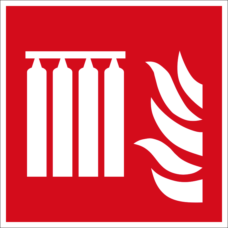 A “Rögzített tűzoltókészülék-telep” a rögzített tűzoltókészülék-telep helyét jelző piktogram.