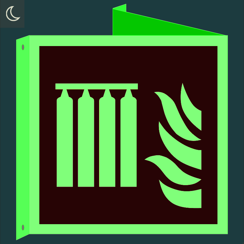 Rögzített tűzoltókészülék-telep utánvilágító tábla, faltól elálló, sátor alakú, kétoldalas (ISO 7010-F008 piktogram) 200x200 mm TUT063003UTG02000200 PET-G 0,7 mm+utánvilágító vinil 330 mm 200 mm 130 mm db 6550 Ft 8319 Ft