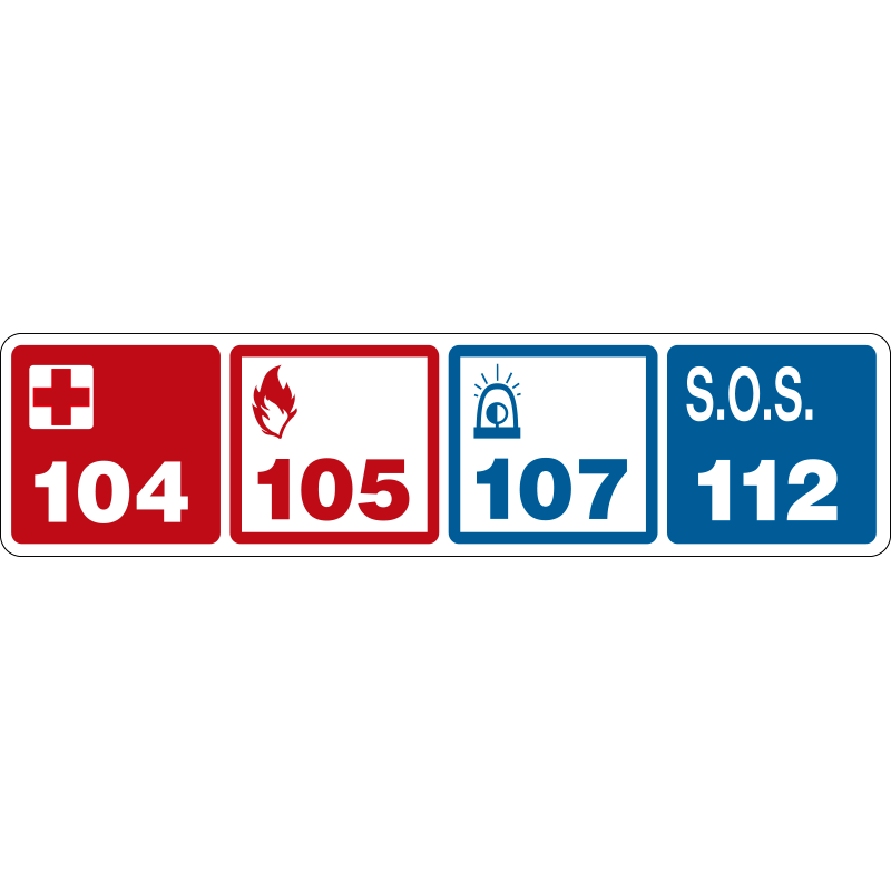 A “Segélykérő telefonszámok” a segélykérő telefonszámokról tájékoztató felirat.