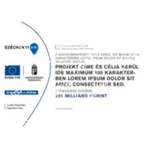 Professzionális hirdetőtábla a SZÉCHENYI 2020 projektek számára. Arculati kézikönyv által megfogalmazott, minden kritériumnak és kommunikációs kötelezettségnek megfelel a négy -féle, „A”, „B”, „C” és „D” típusú projekt táblánk. Biztosítva az egységes és hivatalos megjelenést. Tartós, időjárásálló anyagból készült, könnyen telepíthető. Kapható több méretben, beleértve a nagy és kis méretű verziókat is.
