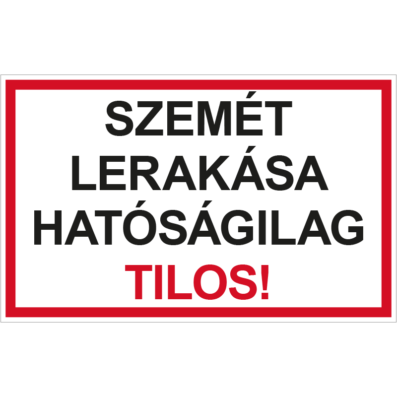 A “Szemét lerakása hatóságilag tilos!” a szemét közterületen való elhelyezését tiltó felirat.