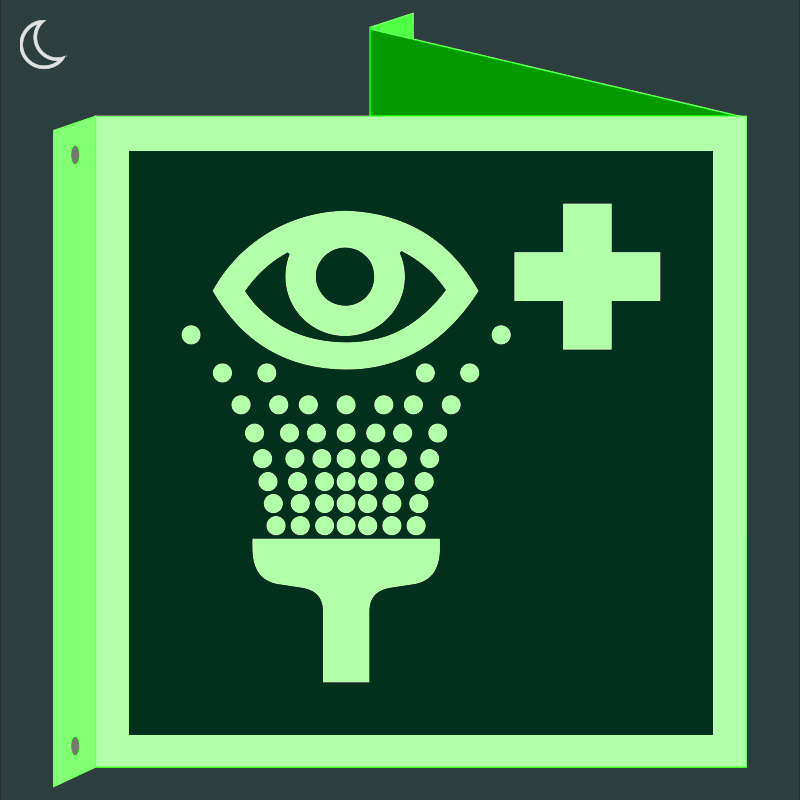 | Szemmosó utánvilágító tábla, faltól elálló, sátor alakú, kétoldalas (ISO 7010-E011 piktogram) 150x150 mm MET013003UTM01500150 | utánvilágító PVC | 255 mm | 150 mm | 100 mm | db | 3250 Ft | 4128 Ft |