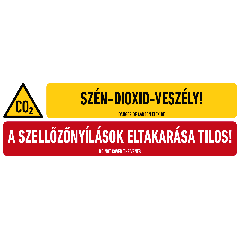 A “Szén-dioxid-veszély! A szellőzőnyílások eltakarása tilos!” a szén-dioxiddal oltó berendezés helyiségében a szellőzőnyílások eltakarását tiltó felirat.