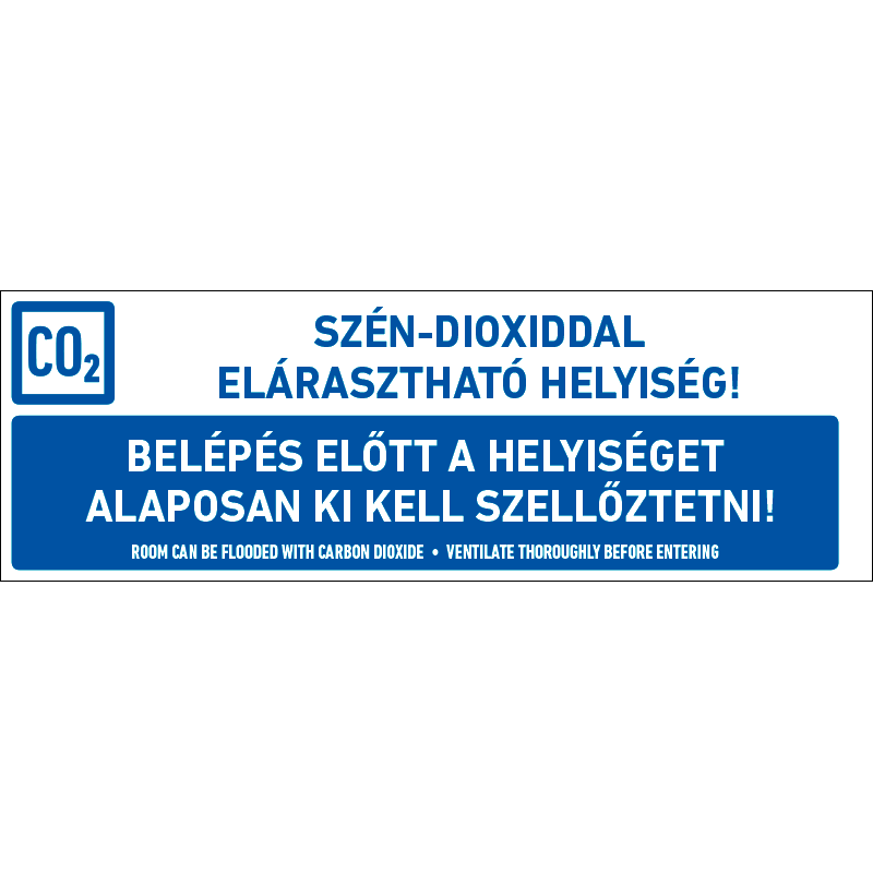 A “Szén-dioxiddal elárasztható helyiség!” a szén-dioxiddal oltó berendezés veszélyeire figyelmeztető felirat.