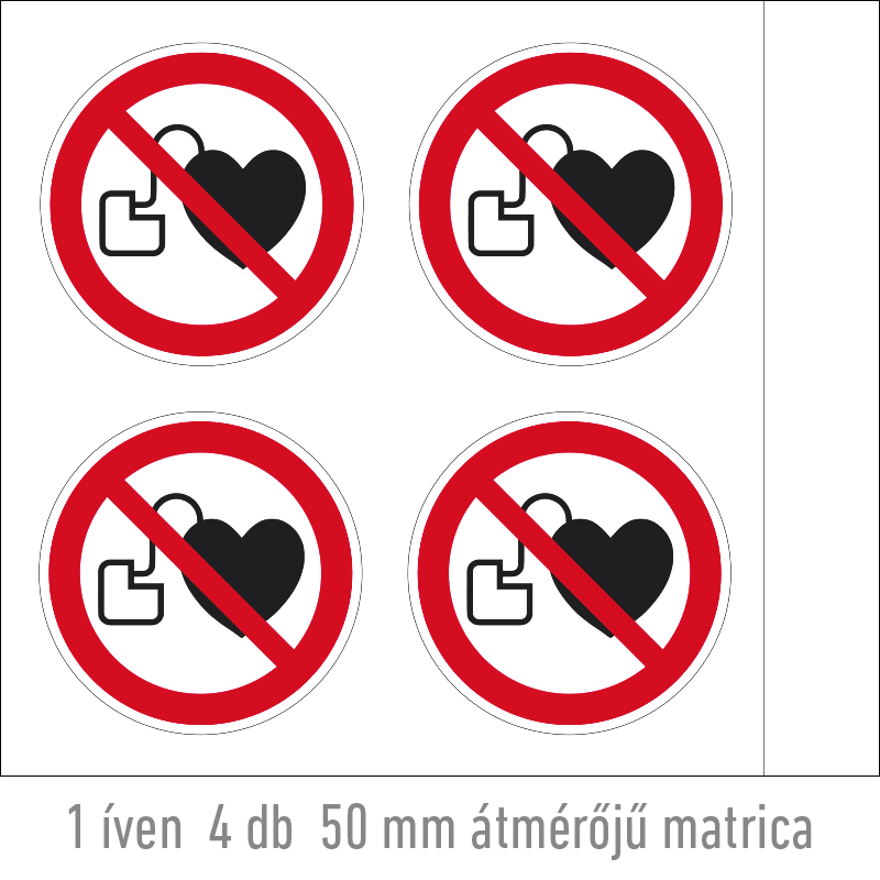| Szívritmusszabályzóval belépni tilos! matrica (ISO 7010-P007 piktogram) 50 mm TIT035000ONV00500000 | vinil öntapadó | 50 mm | 50 mm | 0.2 mm | ív | 330 Ft | 419 Ft |