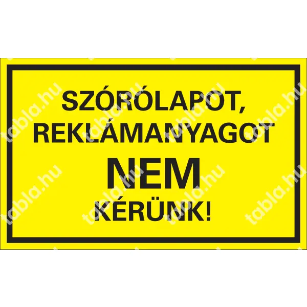 Ez a matrica egyértelműen jelzi, hogy az adott helyen nem kívánnak szórólapokat vagy reklámanyagokat fogadni. Használhatják irodákban, üzletekben, éttermekben és egyéb helyeken, hogy tájékoztassák a reklám anyagokat osztogatókat, hogy ne helyezzenek el anyagokat ezen a területen.