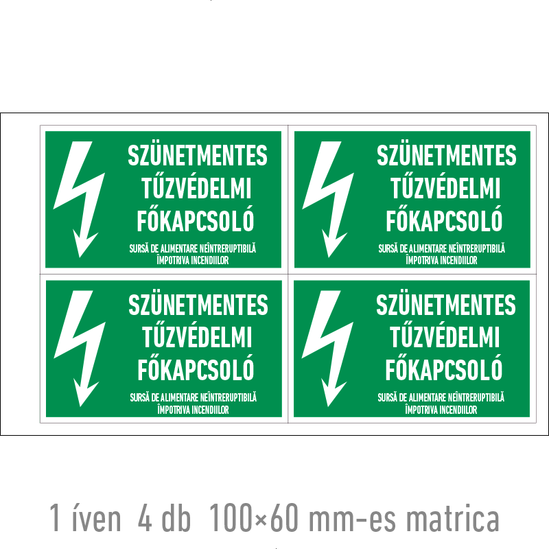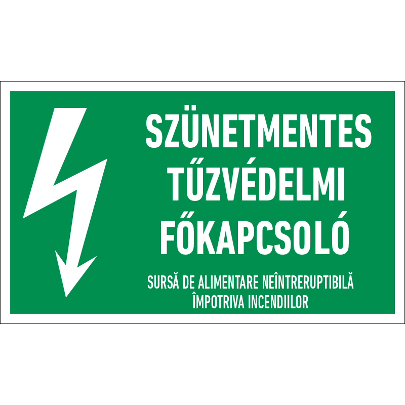 | Szünetmentes tűzvédelmi főkapcsoló matrica 160x100 mm ERV051001ONV01600100 | vinil öntapadó | 160 mm | 100 mm | 0.2 mm | db | 330 Ft | 419 Ft |