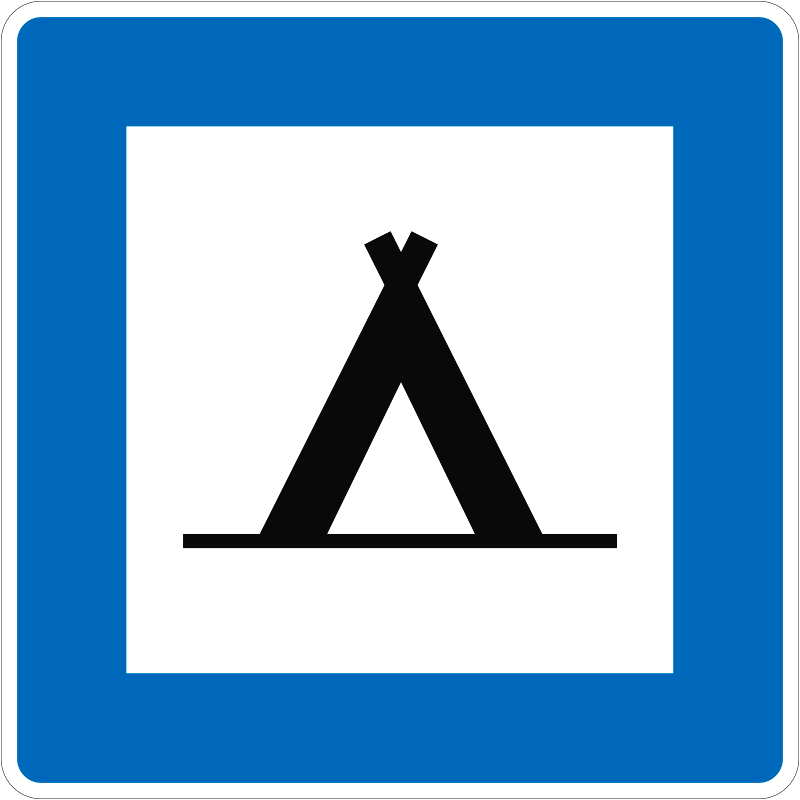 Táborozásra kijelölt hely KRESZ közlekedési tábla