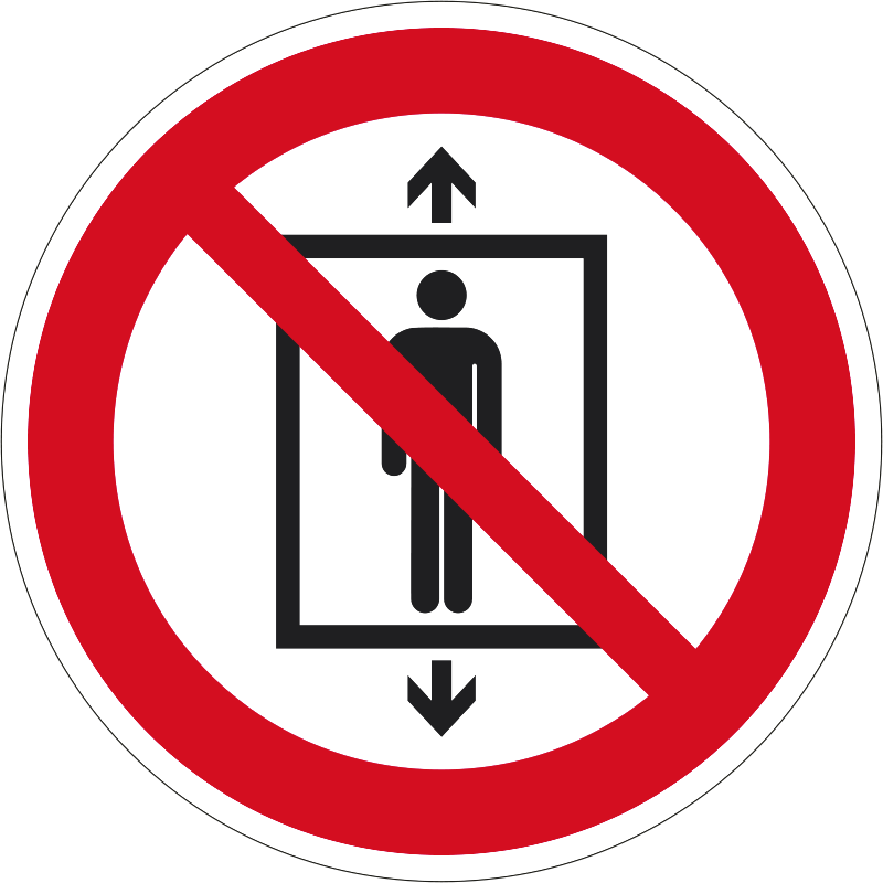 A “Teherfelvonó! Személyszállítás tilos!” a teherliftben a személyszállítást tiltó piktogram.