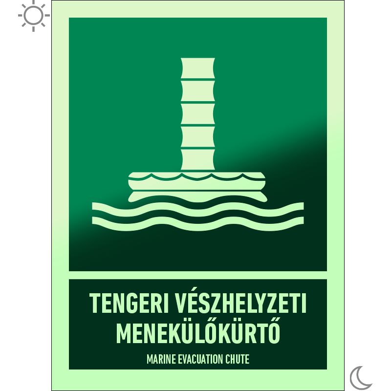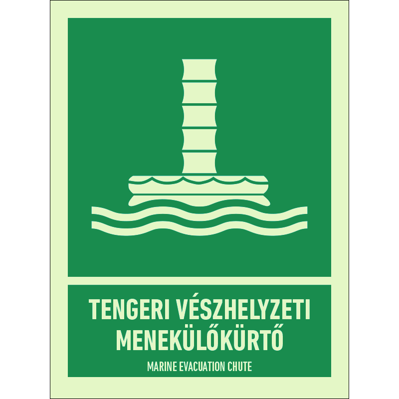 A “Tengeri vészhelyzeti mentőkürtő” a hajón található mentőkürtő helyét jelző zöld alapon fehér piktogram.