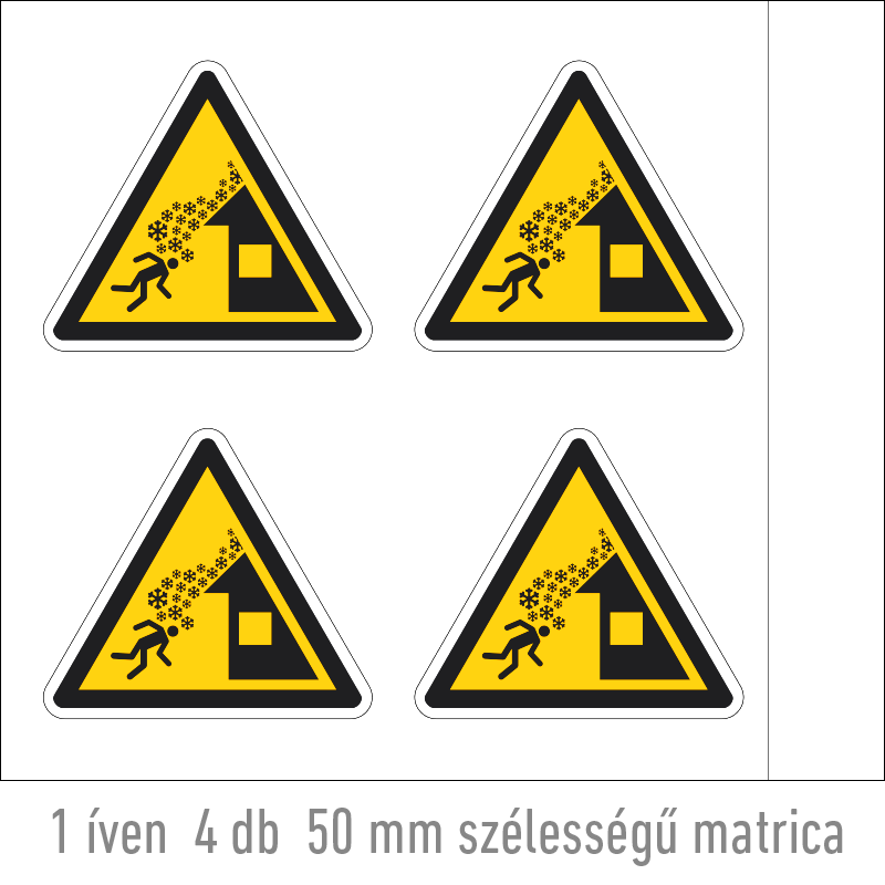 | Tetőről lecsúszó hó matrica (ISO 7010-W040 piktogram) 50 mm VET106000ONV00500000 | vinil öntapadó | 50 mm | 43 mm | 0.2 mm | ív | 330 Ft | 419 Ft |