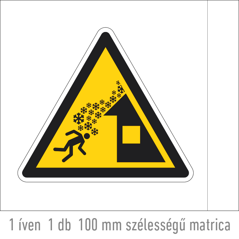 | Tetőről lecsúszó hó matrica (ISO 7010-W040 piktogram) 100 mm VET106000ONV01000000 | vinil öntapadó | 100 mm | 86 mm | 0.2 mm | db | 225 Ft | 286 Ft |