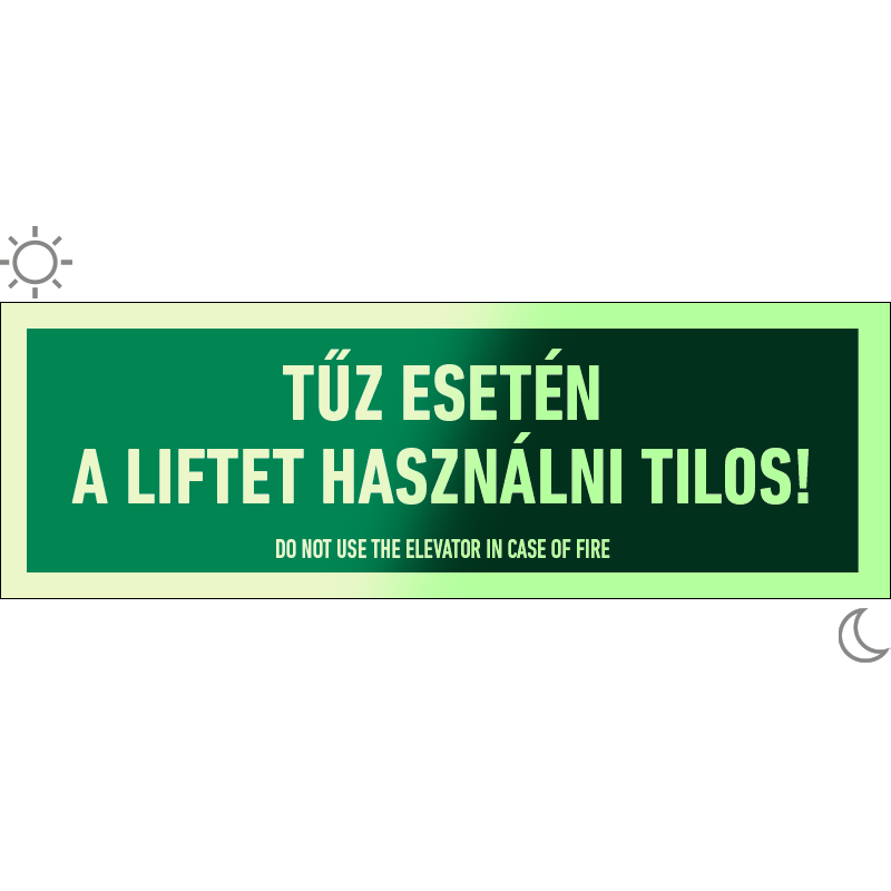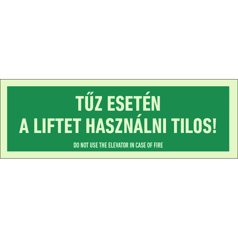 A “Tűz esetén a liftet használni tilos!” a tűzben a felvonó használatát tiltó, sötétben utánvilágító zöld alapon fehér felirat.