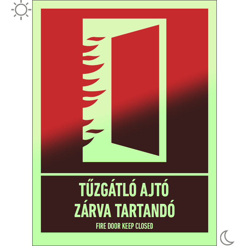 | Tűzgátló ajtó csukva tartandó utánvilágító tábla (piktogram + felirat) 150x200 mm TUT060001UTM01500200 | utánvilágító PVC | 150 mm | 200 mm | 1.1 mm | db | 1450 Ft | 1842 Ft |