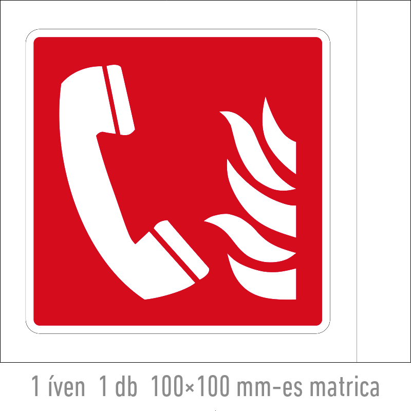 | Tűzjelző telefon tábla (ISO 7010-F006 piktogram) 100x100 mm TUT035001PET01000100 | PET-G 0,7 mm+kétoldalas ragasztó | 100 mm | 100 mm | 1 mm | db | 425 Ft | 540 Ft |